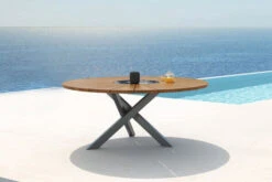OUTFLEXX Esstisch, Edelstahl/FSC-Teakholz, Ø 170cm, Inkl. Drehbarer Granitplatte Und Eiskühler