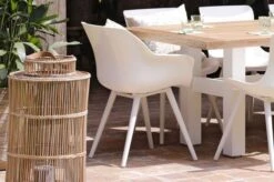 HARTMAN Provence Crossleg Esstisch, Light Grey, Teakholz, Ø150cm, Inkl. Granitinlay Ø50cm