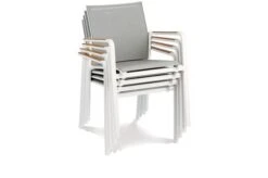 BEST Paros Stapelsessel, Weiß/grau, Alu/Ergotex/Teak, 56 X 64 X 85 Cm