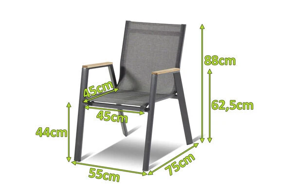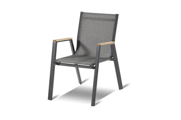 Hartman Aruba Stapelstuhl, xerix/anthrazit, Aluminium/Textilene mit Armlehnen aus Teakholz