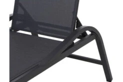 Anthrazitfarbene Sonnenliege aus Aluminium mit Textilbezug und FSC®-Teakholzarmlehnen