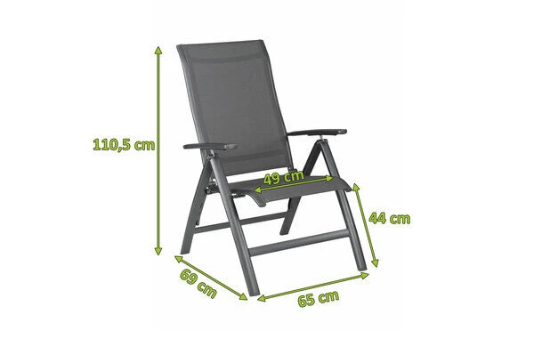 Mit dem Multipositionssessel aus der Legato Curve Serie bequem durch den Sommer. Mittels Rasterschiene lässt sich der Sessel leicht in 4 verschiedene Positionen bringen – so wird der Komfort eines Liegestuhls direkt integriert. Das solide und formschöne Gestell besteht aus edlem, anthrazitfarbenen Aluminium. Die ebenfalls anthrazite Sitzfläche wird aus wasserdurchlässigem, hochwertigem Outdoorgewebe gefertigt. Die Sitzfläche nimmt kein Wasser auf und trocknet schnell, so können Sie auch nach einem kleinen Regenschauer rasch wieder Platz nehmen. Das luftige Gewebe ist formstabil und trotzdem sehr bequem und zusätzlich UV- und sonnenölbeständig – insgesamt also der perfekte Begleiter in Ihrem Garten. Dank der leichten Materialien und des Klappmechanismus lässt sich der Stuhl leicht zu handhaben – wenn er nicht benötigt wird können Sie ihn platzsparend verstauen.