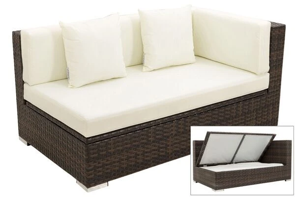 ModulelementeLine: Polyrattan 2-Sitzer Ecksofa mit Kissenboxfunktion in braun-marmoriert