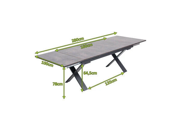 1x OUTFLEXX® Ausziehtisch in OUTFLEXX® anthrazit matt/schwarz, ca. 180/280 x 100 x 78 cm