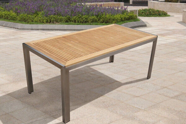 OUTFLEXX® Gartentisch aus Edelstahl und FSC®-zertifiziertem Teakholz, 180x90x75 cm