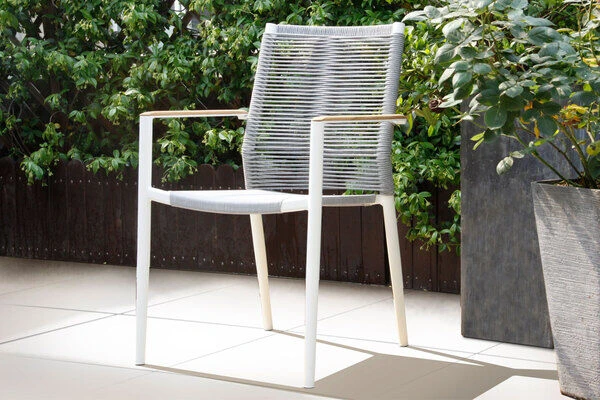 OUTFLEXX® Theo Dining Sessel, weiß/grau, Alu/FSC®-Teakholz/Rope, 54 x 60 x 88 cm