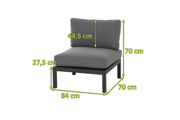 Zeitloses Alvida Mittelmodul aus Aluminium und Ranotex in anthrazit-grau von SIENA GARDEN, inkl. Polster