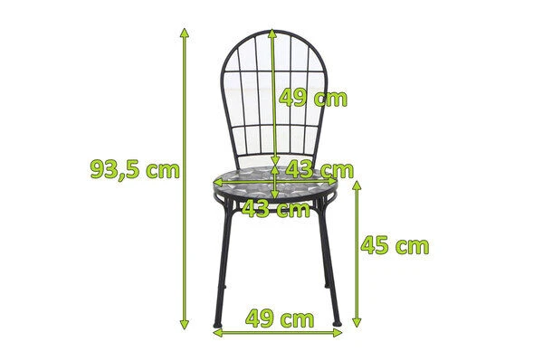 1x SIENA GARDEN Como Stapelstuhl, matt schwarz, Stahl/Keramik, 49x43x93,5 cm, mit Mosaikoptik (J53782)