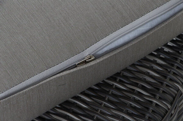 | Pflegeleicht und wetterfest Dank der hochwertigen Materialien können Sie das Möbelstück ohne Probleme das ganze Jahr über nutzen. Die Kissen verfügen über einen praktischen Reißverschluss und sind zudem handwaschbar. Mit einer regelmäßigen, jedoch nicht sonderlich zeitintensiven Pflege, haben Sie ganz besonders lange Freude daran. |