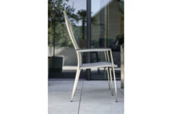 Der Sessel überzeugt nicht nur mit seinem zeitlosen Design und den hochwertigen Materialien, sondern vor allem auch durch seinen Komfort und seine Funktionalität. Schlicht, unauffällig und dennoch ein Hingucker. So lässt sich der New Top wohl am besten beschreiben. Holen Sie sich mit diesem Sessel Eleganz vereint mit perfektem Sitzkomfort nach Hause und genießen Sie entspannte Stunden z.B. nach Ihrem Feierabend. Die hochwertigen Materialien und die sorgfältige Verarbeitung sorgen nicht nur für die besondere Optik dieses Stuhls, sondern machen ihn auch äußerst stabil. Der New Top wird Ihnen durch seine hohe Widerstandsfähigkeit gegen Wind und Wetter viele Jahre Freude bereiten. Das Gestell aus Aluminium ebenso wie das Textilgewebe der Sitzfläche und der Rückenlehne sind besonders pflegeleicht. Die Sitzfläche hat die Farbe silber. Leichte Verschmutzungen lassen sich ganz einfach mit ein wenig Wasser wieder entfernen. Durch seine Stapelfunktion und den Maßen von ca. 65 x 57 x 89 cm lässt sich der Stuhl aber dennoch platzsparend verstauen, wenn Sie doch einmal etwas mehr Platz auf Ihrer Terrasse oder im Garten benötigen sollten.